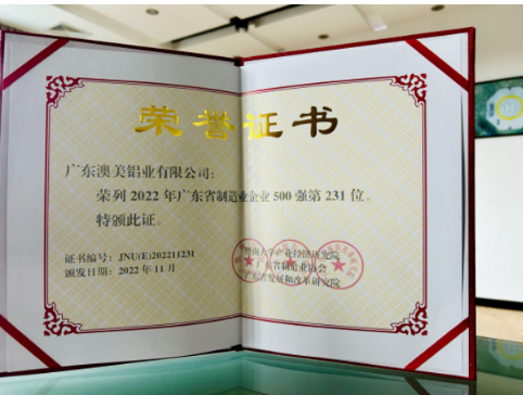 2023. 01. 06Congratulations to PMI for being honored as one of the top 500 manufacturing enterprises in Guangdong Province once again.It is a recognition of our years of deep commitment to industrial aluminum pro... -