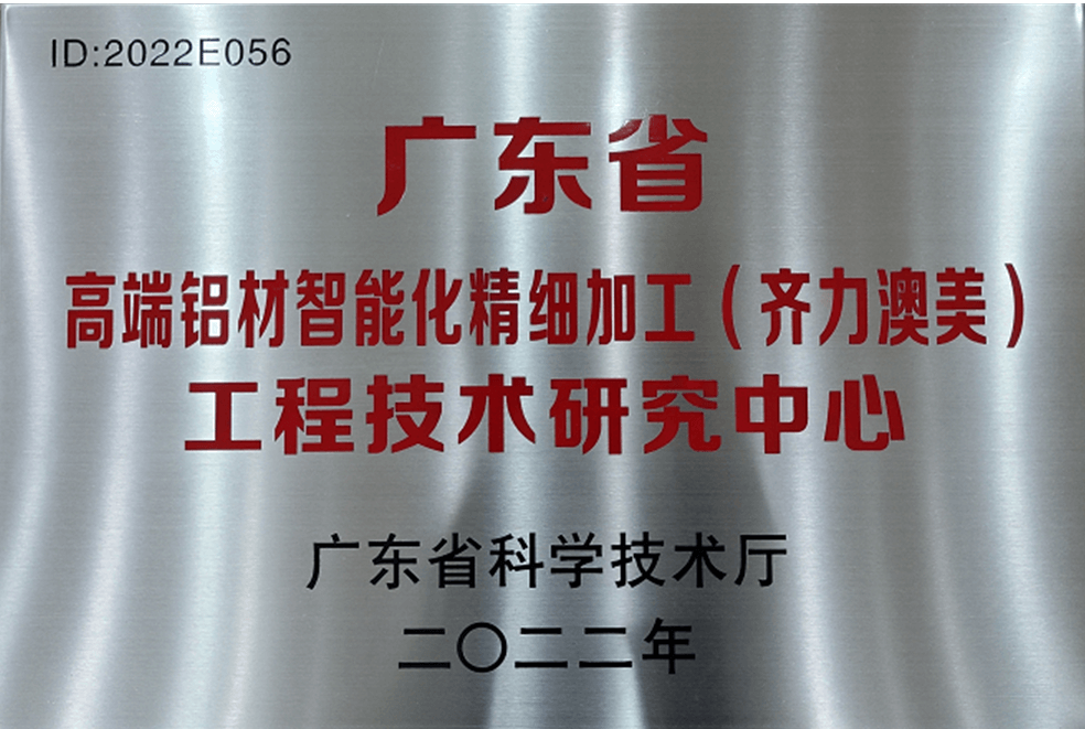 - 被认定为佛山市高端铝材智能化精细加工工程技术研究中心