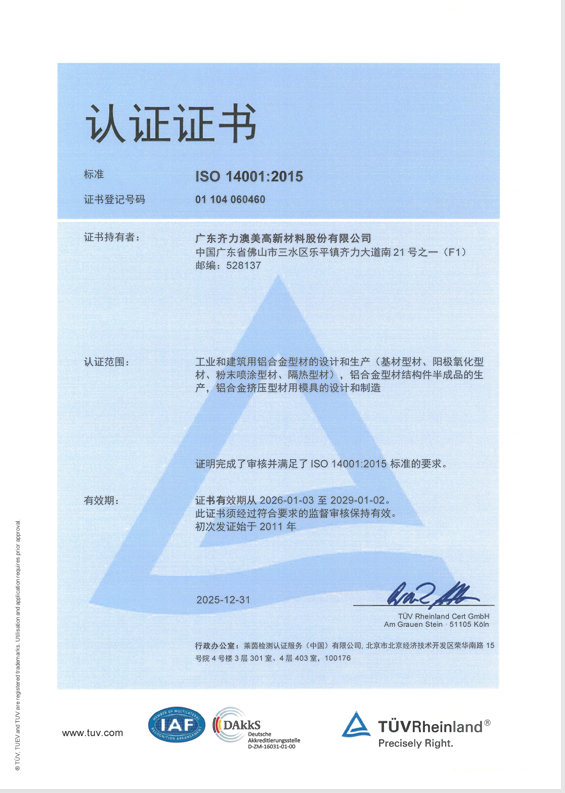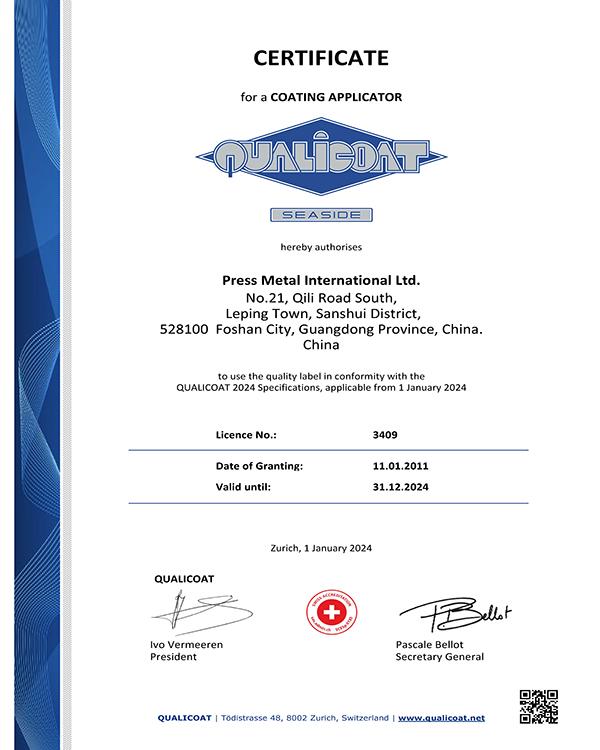 QUALICOAT证书(喷涂户外产品欧标认证)